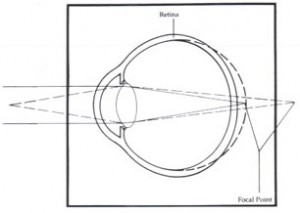 Myopia is caused by light being focused in front of instead of on the retina of the eye. This may occur because your eye is longer than normal or your cornea is steeper than normal. The steeper, or more curved your cornea, the cornea, the greater the focusing power.